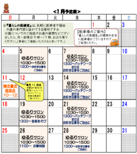 お茶を飲みながらゆったりと過ごせる地域の皆さまに開かれた空間です。 おしゃべりや体操、折り紙、パッチワークをして楽しく過ごしています。どなたでも利用することができますのでお気軽に遊びにいらして下さい。 開催日:月曜日・水曜日(10:30 ~ 15:00) 時間:10時半~15時 利用料:1日利用